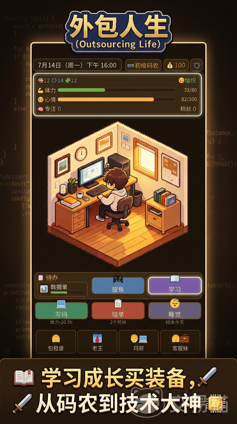 《外包人生》是一款以真实职场体验为核心玩法的模拟经营类手游,玩家将扮演一名初入行业的自由外包开发者,在有限资源下开启职业成长之旅。游戏开局即置身于简朴的小出租屋,手握微薄启动资金与一台基础电脑,需通过接单、学习、规划作息等操作,逐步实现从生存到发展的跨越。
