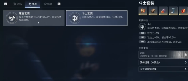 对于开荒玩家而言,一开始没有必要去追求完美的套装,随意的凑一整套即可,优先选择主线升级输出的角色,再进入到后期可以选择炼金套装或者是其他的输出套装。辅助角色就可以选择搭配辅助套装。如果没有凑齐套装堆基础属性,也可以正常的玩耍。从目前的版本来看,辅助套装的强度比较低,所以大家一定要懂得废物利用,不要强行的培养,但是后期到底会怎么样,可能会有调整。