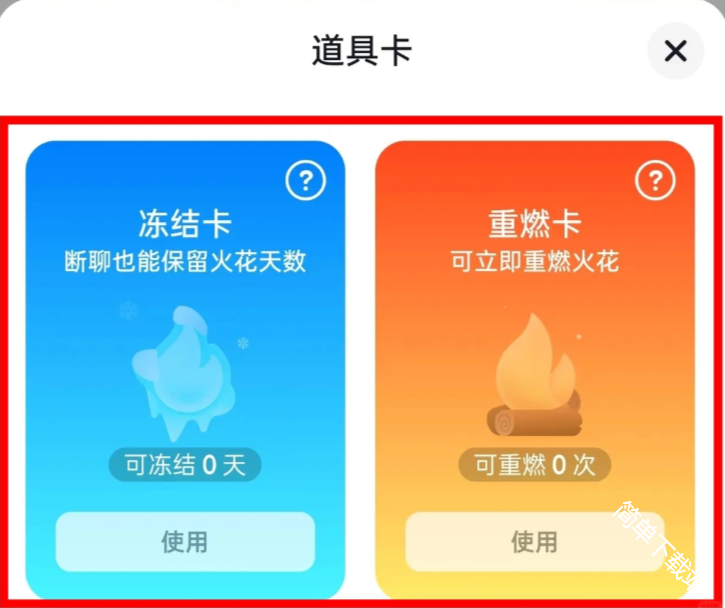 5、然后就可以使用冻结卡保留火花天数,还可以使用重燃卡来重燃火花