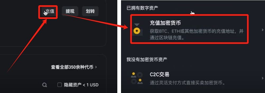 第二步:选择"充值加密货币"选项。